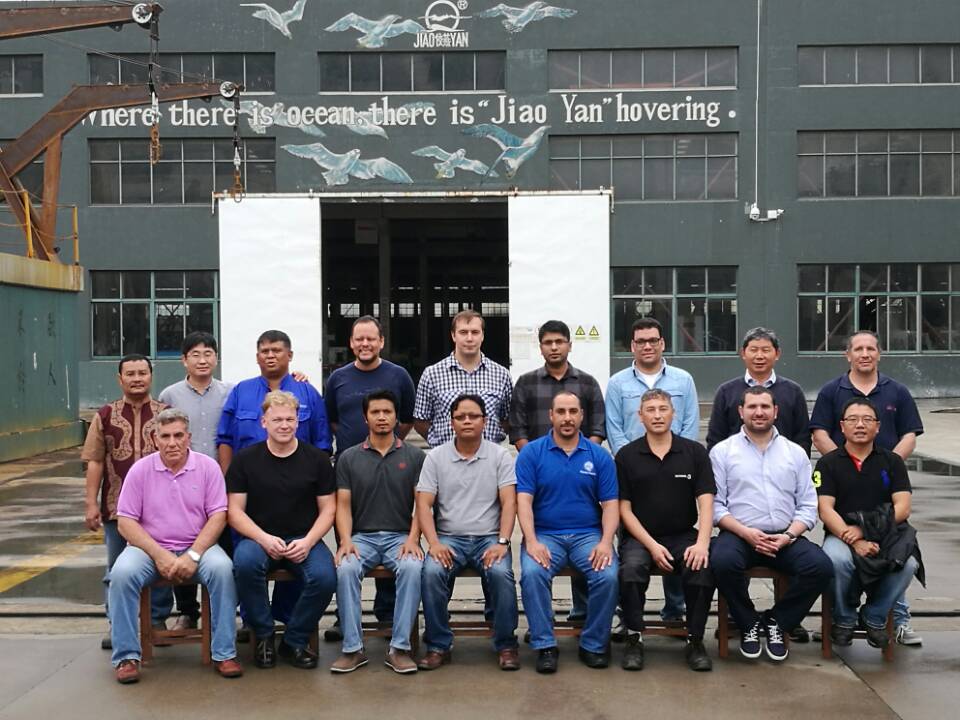 17名船舶服务精英人员来到拼搏网,对厂家设备的新设计,新产品进行深层次的学习和服务训练,成为佼燕救生设备的优秀服务商,为佼燕的客户提供更优质,更专业,更及时的服务.